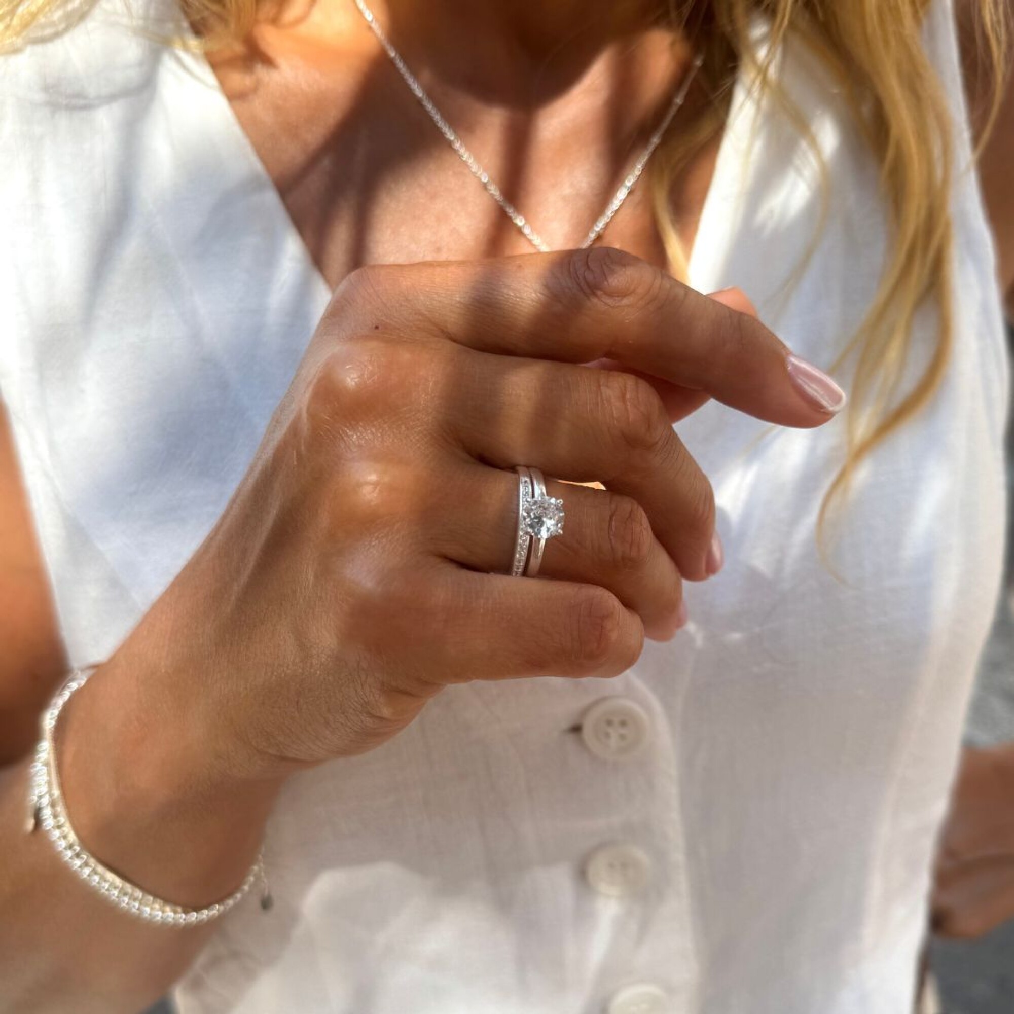 Set de anillo solitario y anillo medio sin fin confeccionado en Plata 925.